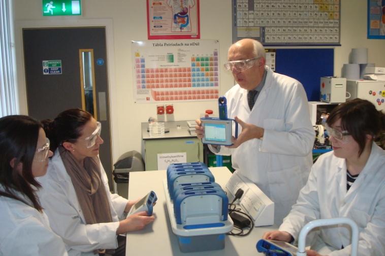 Figura 1: John Lucey demonstrando a utilização de registro de dados na promoção IBSE num laboratório de um Programa de Formação Contínua para professores PROFILES. © UCC